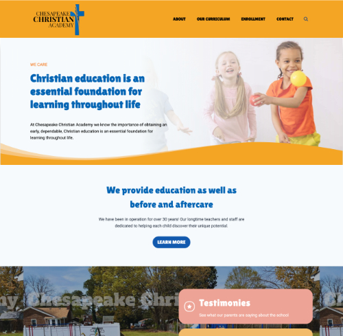 Chesapeake Christian Academy needed a website that matched the warmth and excellence of their programs for children ages 6 weeks through 3rd grade. Their previous site was outdated, and not responsive on mobile—making it hard for families to get the information they needed. We redesigned their entire online presence with a clean, modern layout, fully responsive design, and streamlined user experience. The new site includes interactive digital forms for annual enrollment and summer camp, giving parents an easier, faster way to connect with the school. The result is a welcoming, functional platform that reflects the academy’s mission and supports families year‑round.